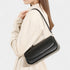 - Strap: Designed with a sleek leather strap for effortless underarm carry